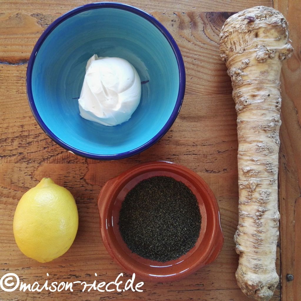 1-2 EL Meerrettich-Wurzel, frisch, gerieben (alternativ junge Blätter, fein geschnitten)