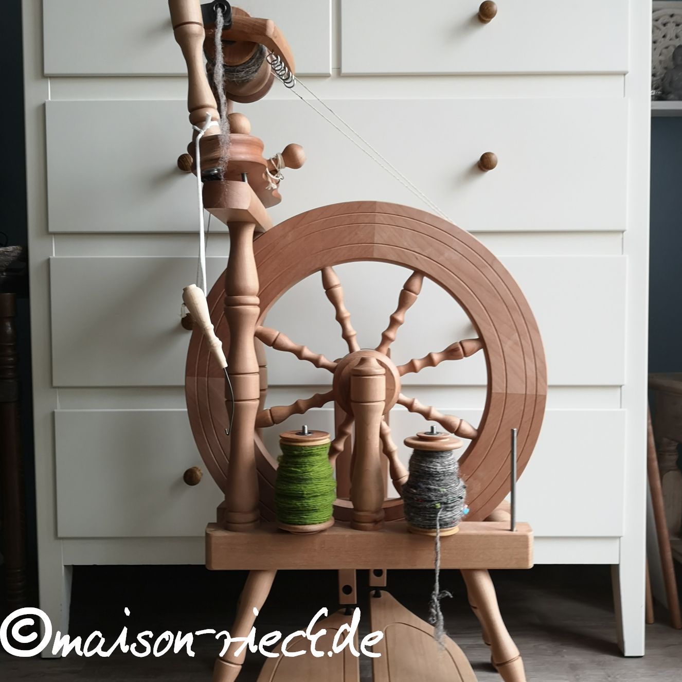 Dann können sie gesponnen werden. Das geht auch mit einer einfachen Handspindel sehr gut, aber mit dem Spinnrad geht es etwas schneller 😉