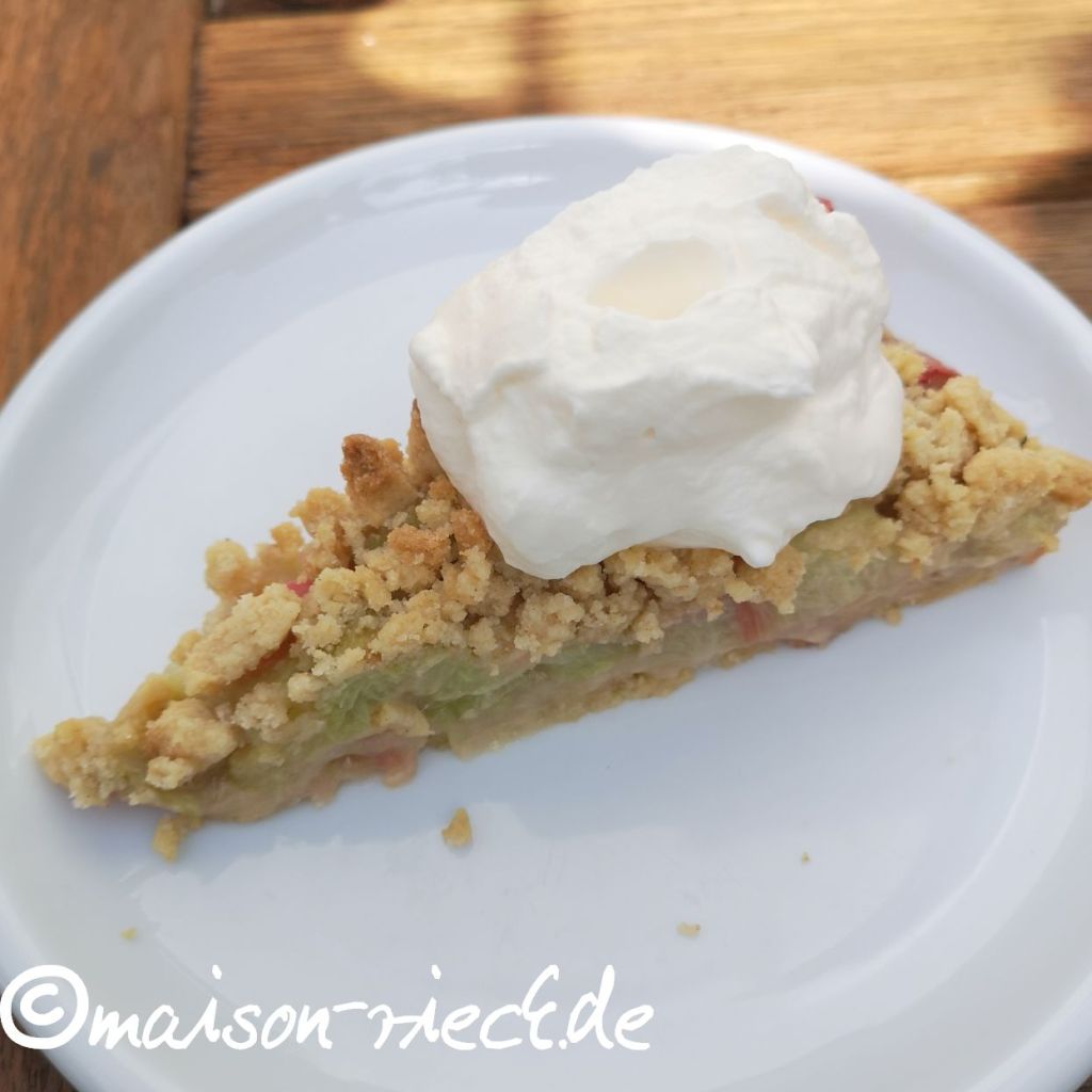 Den Rhabarber-Streuselkuchen am besten noch lauwarm mit der frisch geschlagenen Sahne servieren.