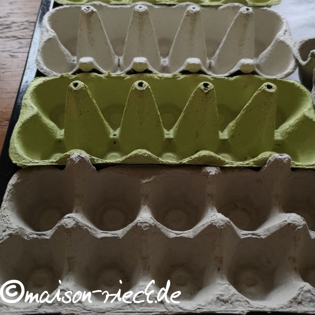 Dann werden die Eierkartons am besten mit einem großen Messer (alternativ mit einer Küchenschere) in die einzelnen Segmente zerteilt.