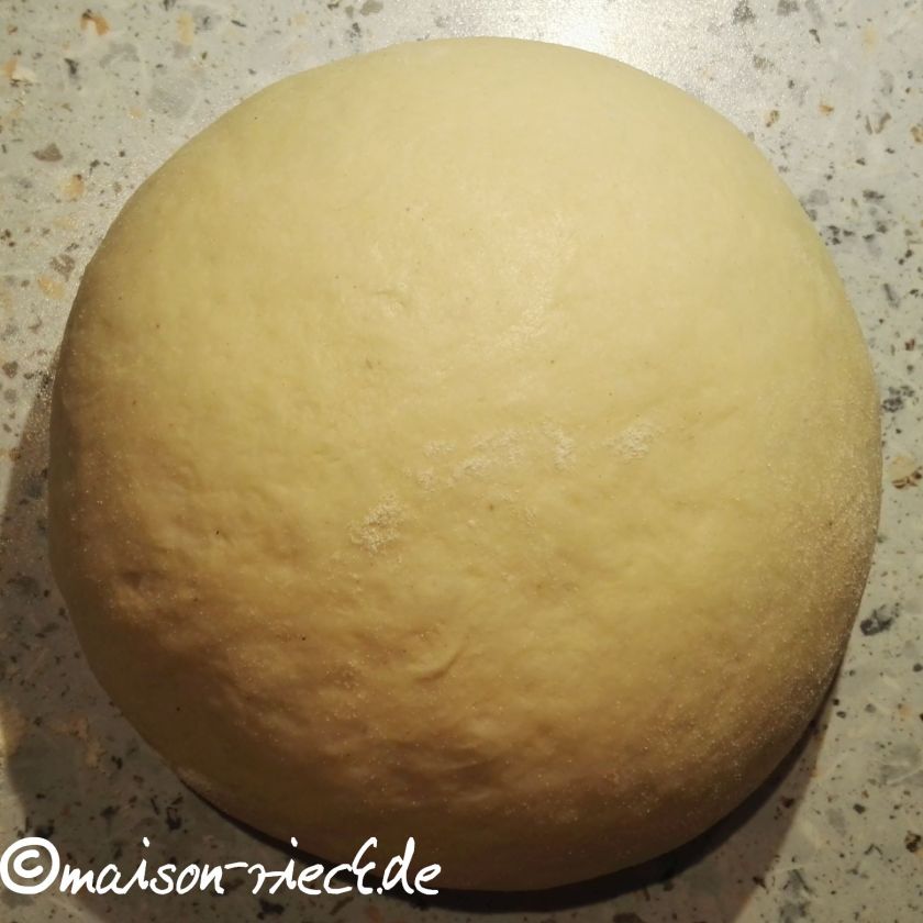 Aus den Zutaten für den Teig einen Hefeteig herstellen. Die ausführliche Beschreibung findet sich weiter unten.