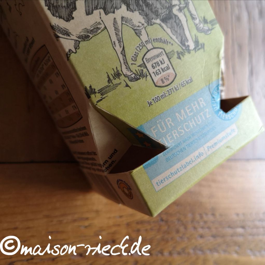 Den Tetrapak zuerst mit kaltem Wasser und dann mit warmen Wasser und etwas Spülmittel gut reinigen und kopfüber trocknen lassen.