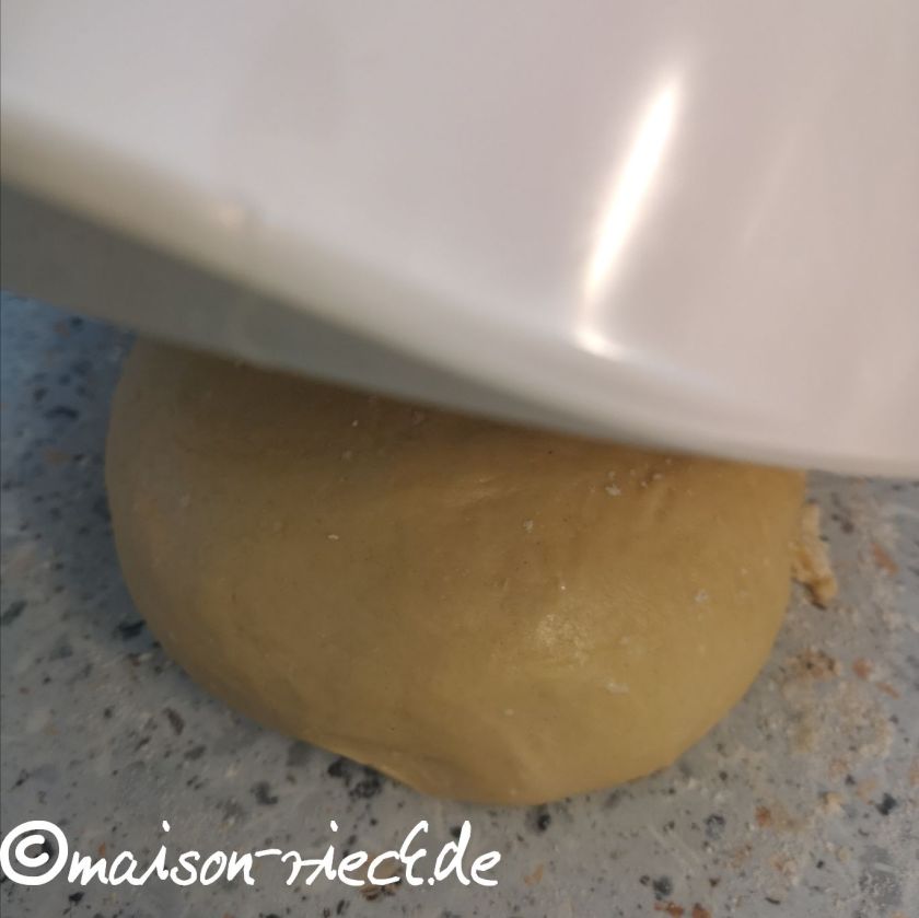 Aus Mehl, Eiern, Salz und Wasser einen glatten, festen Teig herstellen. Zu einer runden Kugel formen und den Teig ca. 1 Stunde zugedeckt unter einer Schüssel ruhen lassen.