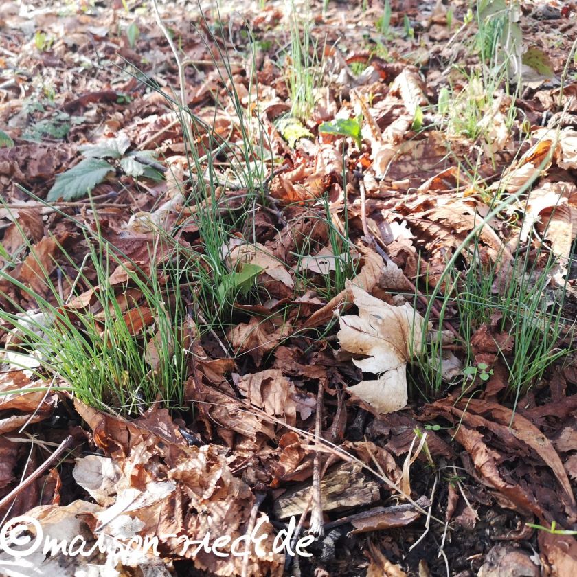 Wilder Schnittlauch ist im Frühjahr am leichtesten zu finden, denn seine im Vergleich zu den Kultur-Arten zarten Halme gehören zum ersten Grün, das im zeitigen Frühling durch den Boden bricht.