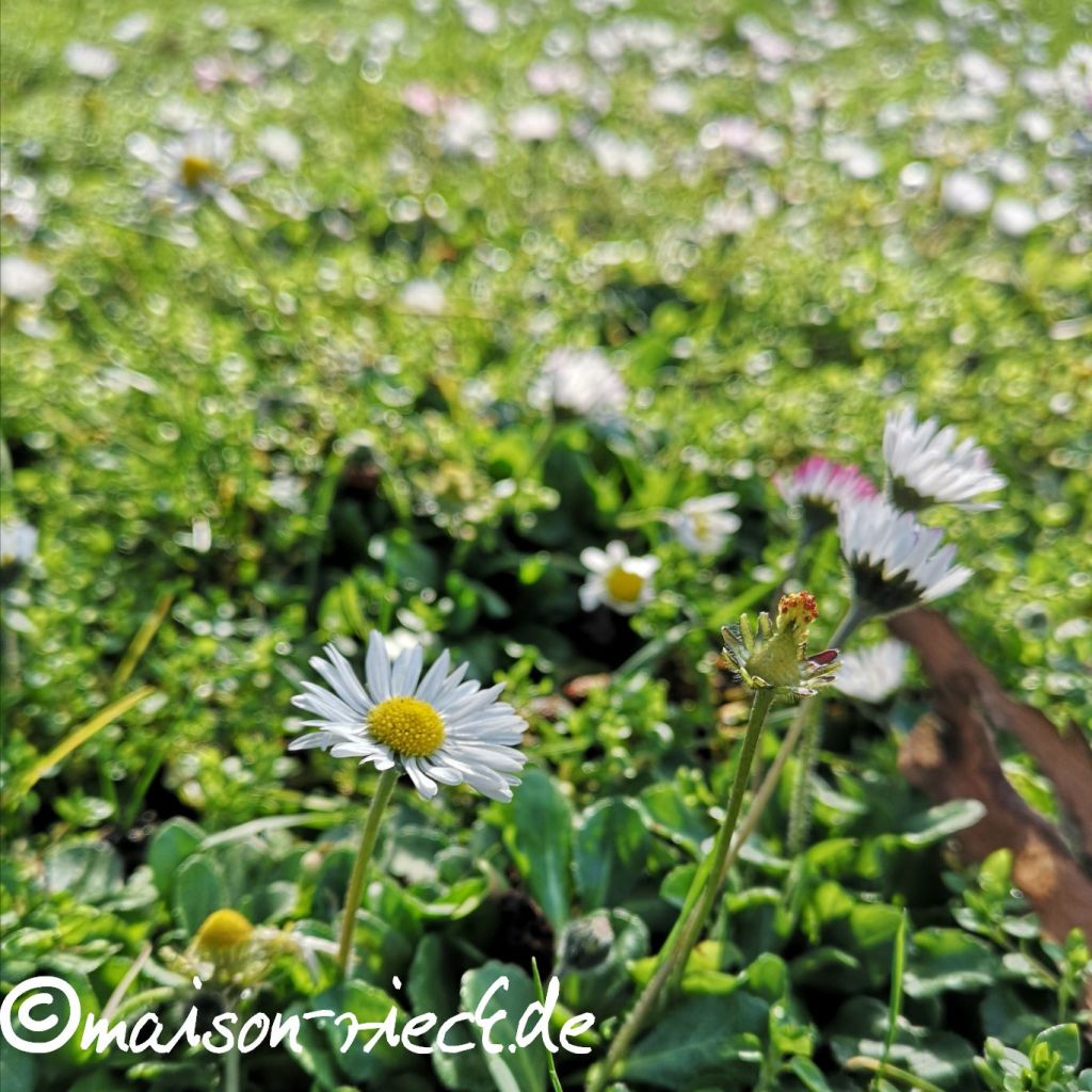 Der botanische Name des Gänseblümchens (Bellis perennis) weist auf die Schönheit („Bellis“) dieses auf den Blick unscheinbaren Blümchens hin, das fast das ganze Jahr über („perennis“) unermüdlich auf den Wiesen blüht und selbst nach dem Rasenmähen sofort wieder die Blütenköpfe hebt.