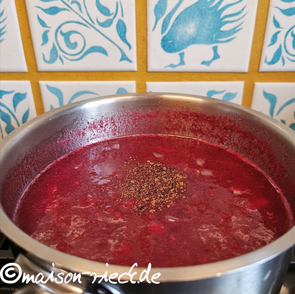 Schlehen sind nicht nur farblich, sondern auch geschmacklich interessant. Zwar überwiegt roh gegessen meist der herbe, zusammenziehende Geschmack, der dem hohen Anteil an Gerbstoffen zu verdanken ist, aber zubereitet treten die fruchtigen Aromen in den Vordergrund. Das ist eine gute Grundlage für ein pikantes Ketup mit einem Hauch von Sternanis, Piment und Nelken.