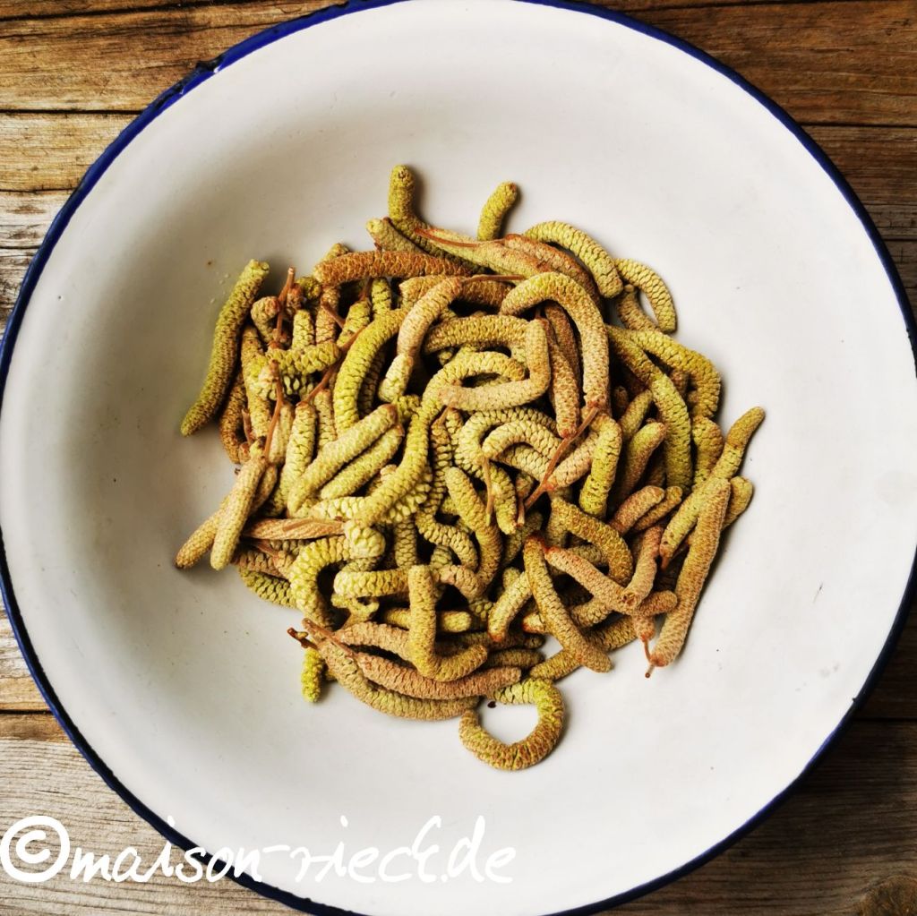 Die ebenfalls im Überfluss vorkommenden Haselkätzchen wurden gesammelt und getrocknet entweder für Tee oder als Streckmehl genutzt.