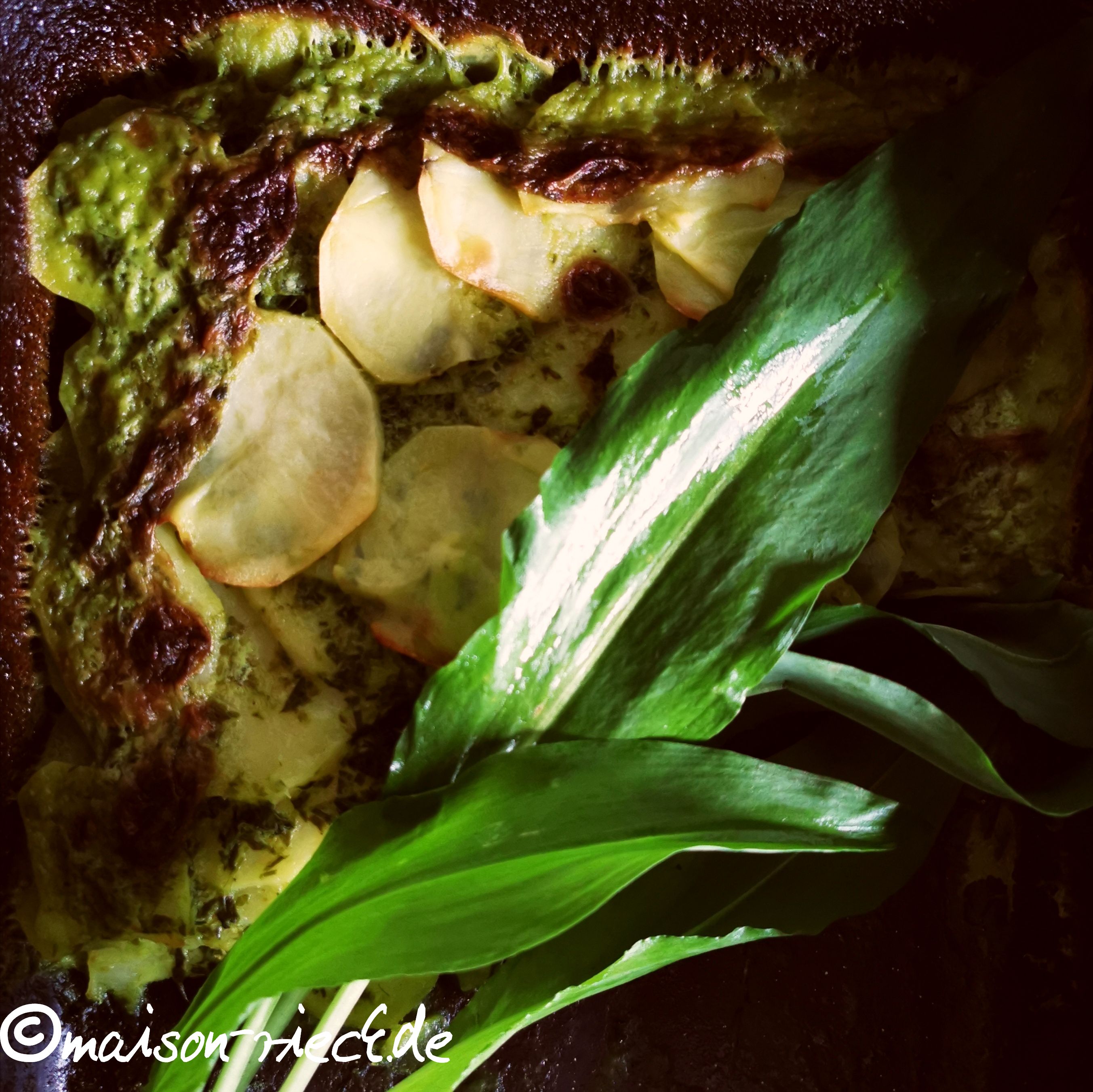 Bärlauch zählt, neben Rauke, zu den wenigen Wildkräutern, die es zu großer Bekanntheit gebracht und sogar bis in die Gemüseabteilungen der Discounter geschafft haben. Inwiefern die dort angebotenen Wildgemüse tatsächlich noch wild wachsen, sei dahin gestellt, denn die Nachfrage lässt sich wohl nur über effiziente Anbau- und Erntemöglichkeiten decken. Bärlauch ist ausgesprochen beliebt und vielseitig in der Küche einsetzbar, warum zur Abwechslung nicht einmal in einem Kartoffel-Gratin?