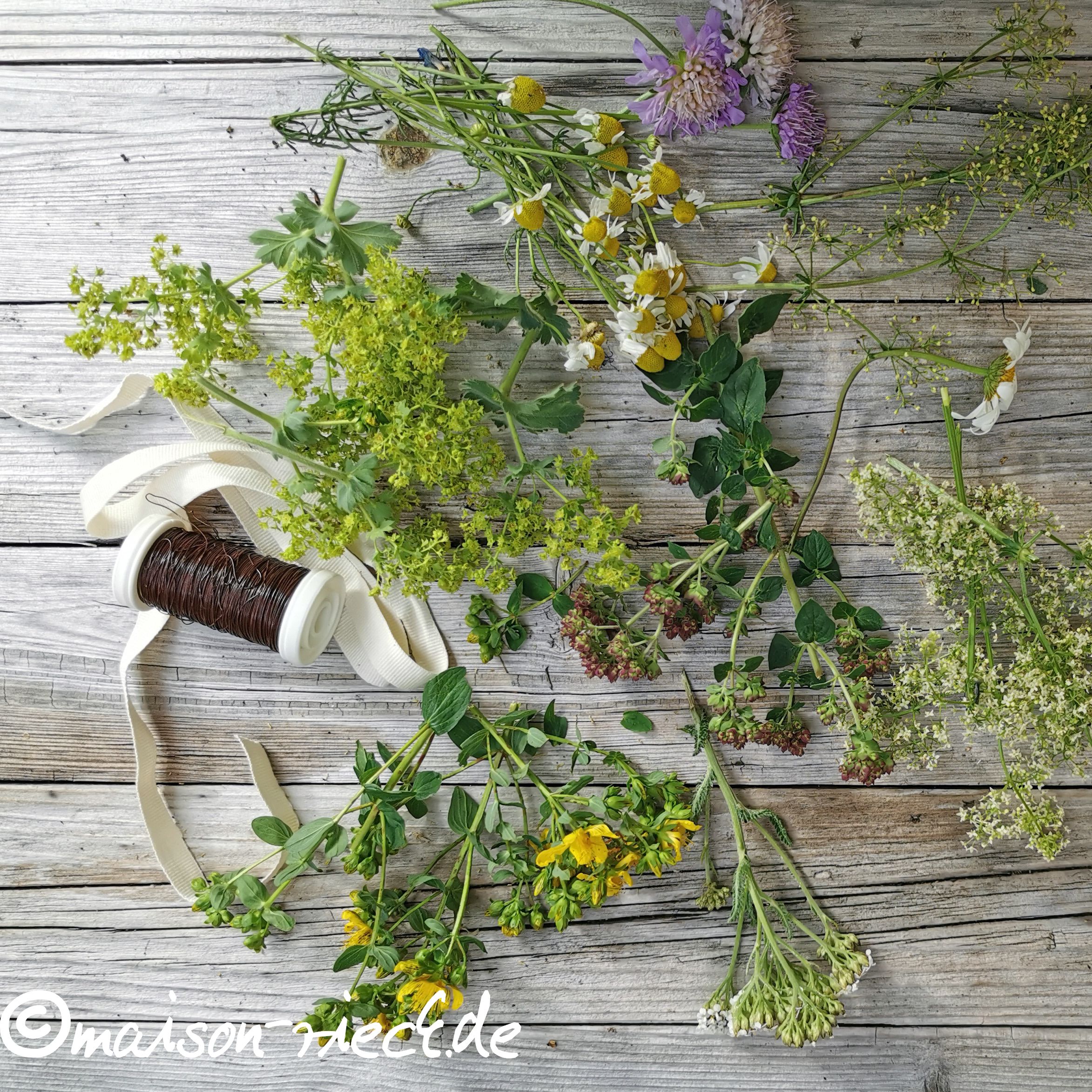 - 1 großen Strauß Wildblumen (was regional in großen Beständen wächst, Beispiele siehe oben)
