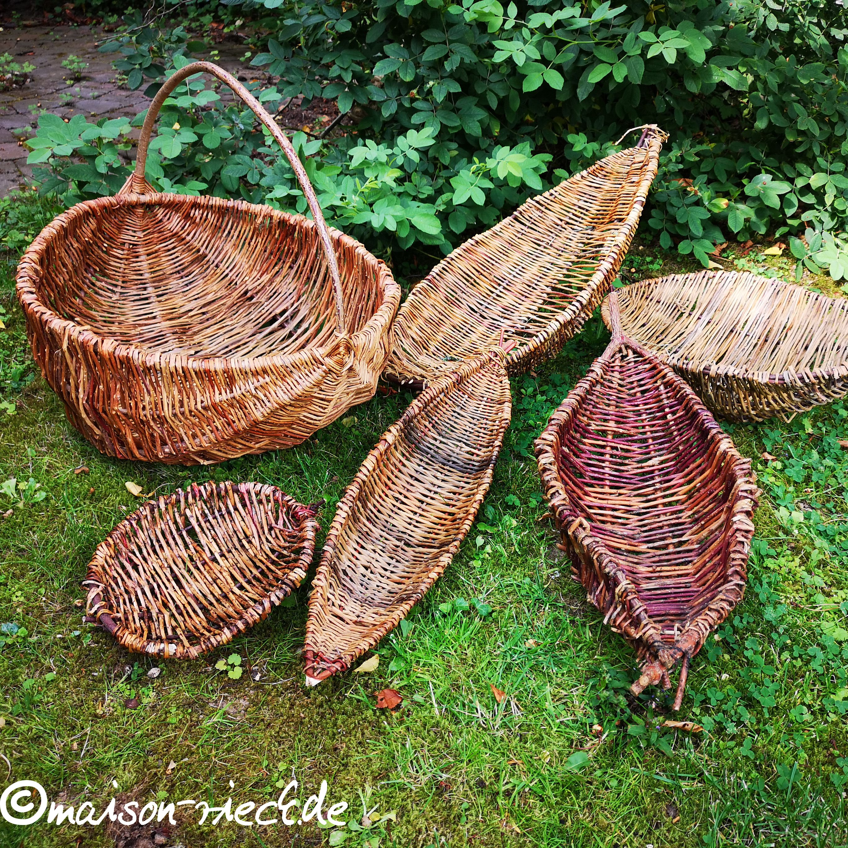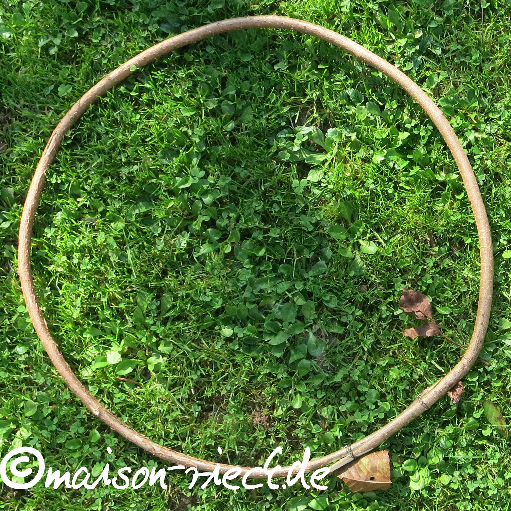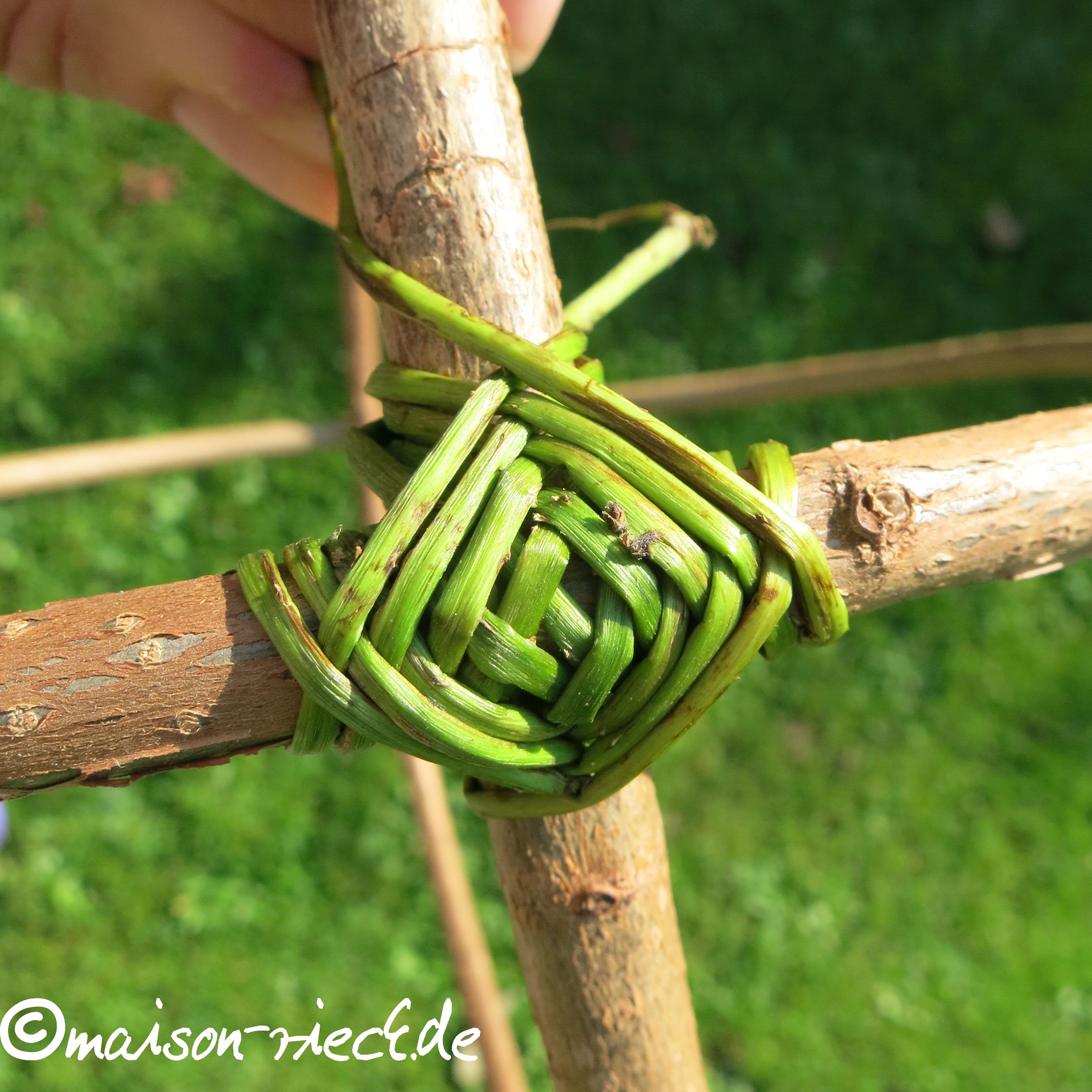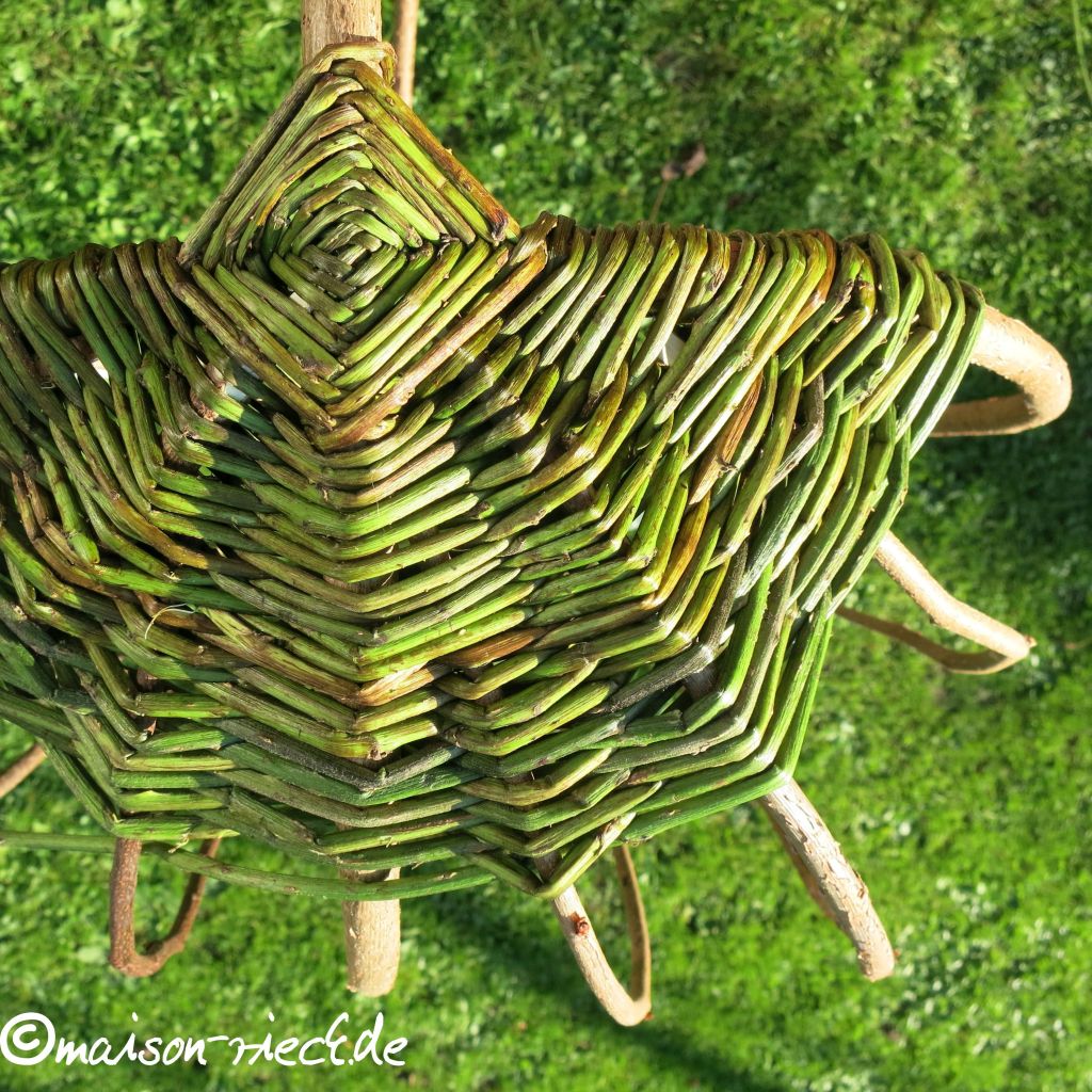 Wichtiger Hinweis: je frischer die Ranken verarbeitet werden, desto mehr schrumpfen sie beim Trocknen. Dadurch kann das Geflecht etwas lockerer werden. Das lässt sich ausgleichen, indem zu einem späteren Zeitpunkt in der Mitte noch weitere Ranken eingeflochten werden.