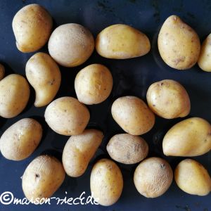 Die Kartoffeln gründlich waschen und im Schnellkochtopf gar kochen. Die noch heißen Pellkartoffeln auf einem Backblech verteilen und mit dem flachen Boden es Bechers oder Schälchens vorsichtig zerdrücken, bis sie platzen.