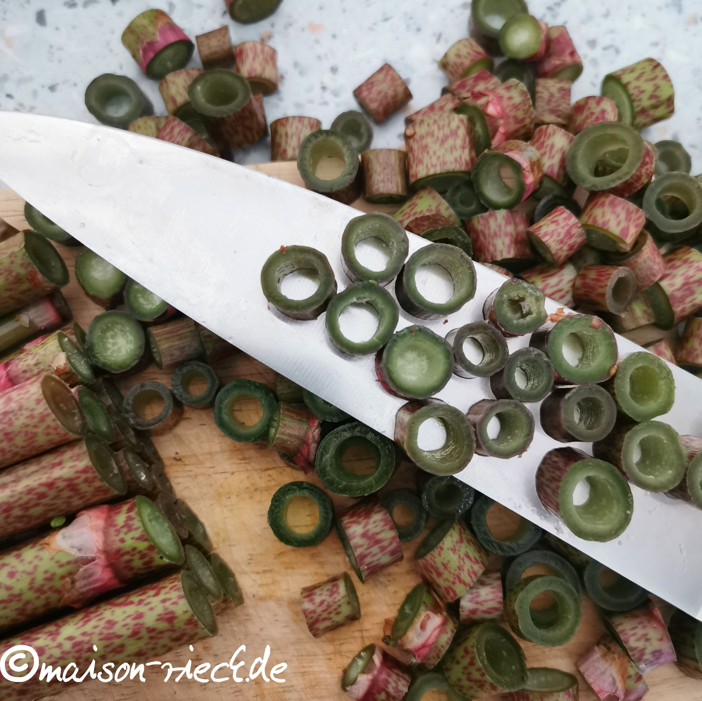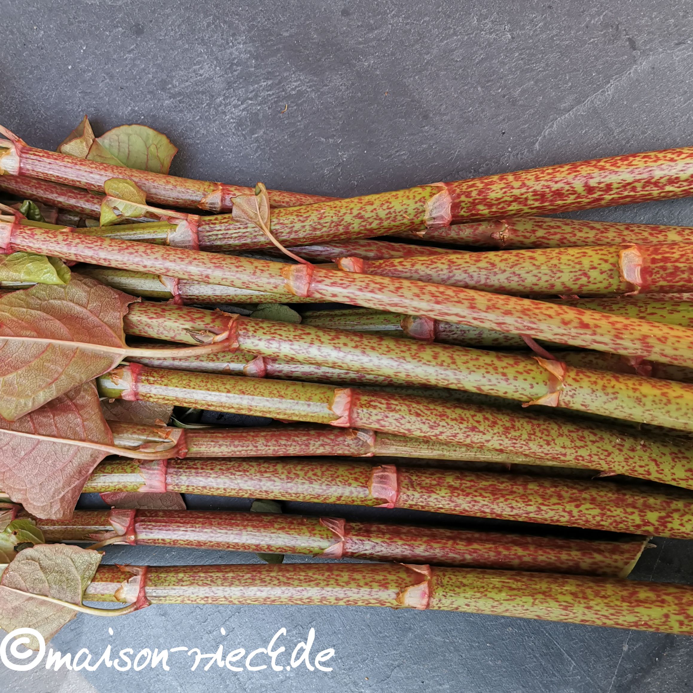 Mehr Informationen zum Japanischen Staudenknöterich gibt es im Beitrag über „Cupcakes vom Japanischen Knöterich„. Hier geht es nun um eine weitere Möglichkeit, das „Unkraut“ zuzubereiten.