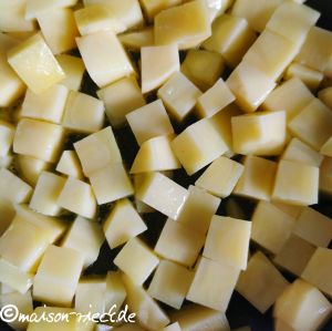 Für die duftenden Kartoffeln festkochende Kartoffeln schälen und in etwa 1 Zentimenter große Würfel schneiden. In einer beschichteten Pfanne etwas Olivenöl erhitzen, die Kartoffelwürfel dazu geben und unter gelegentlichem Wenden von allen Seiten kross anbraten. Kurz vor Ende der Garzeit mit dem Sale profumato würzen.