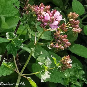 Dost (Origanum vulgare) ist die wilde Form des Oregano. Seine Blätter haben das typische Aroma, das gerne mit Pizza assoziiert wird. Aber nicht nur die Blätter, sondern auch die rosafarbenen Blüten enthalten die ätherischen Öle, die für den charakteristischen Duft und Geschmack verantwortlich sind. Außerdem sind sie ein schöner farblicher Akzent.