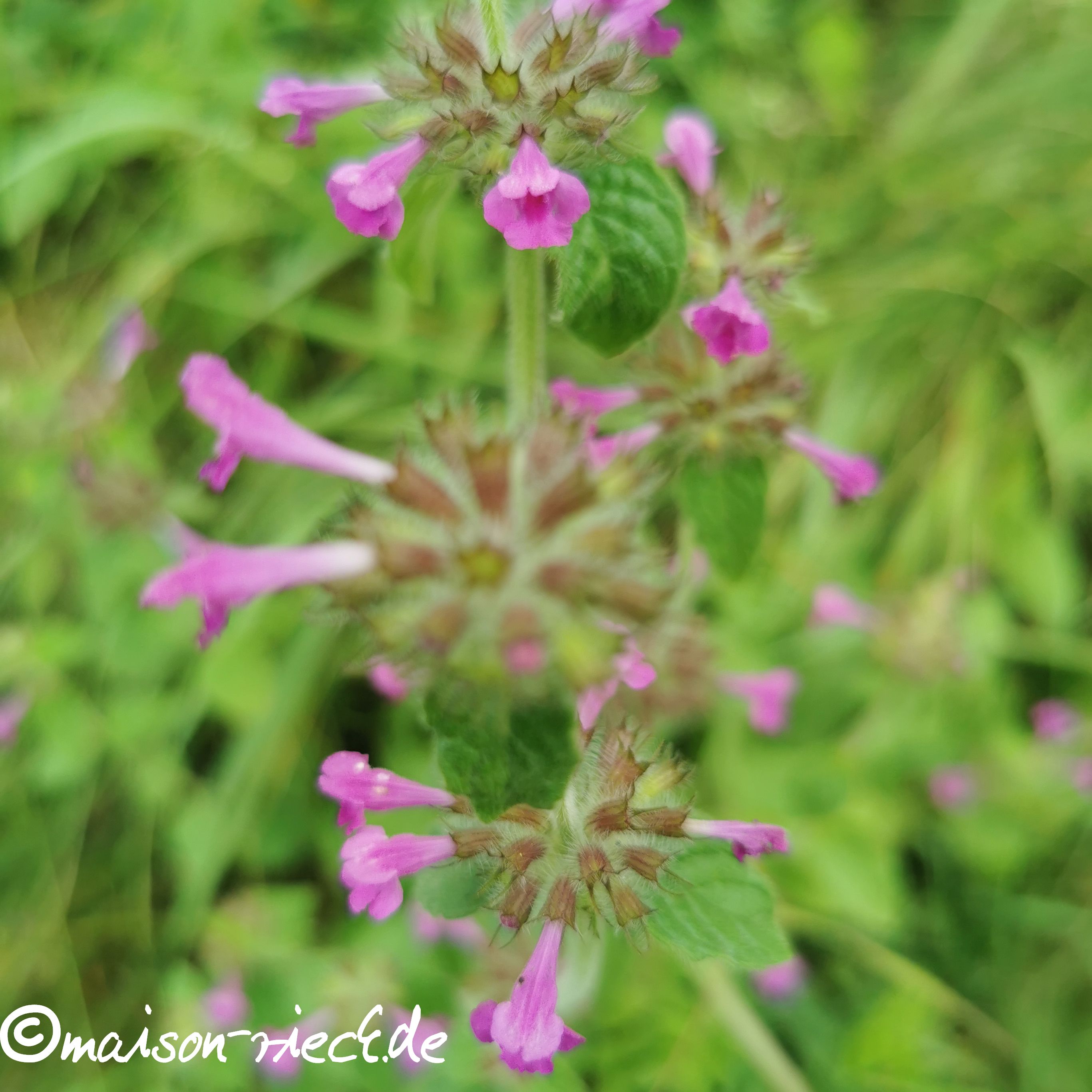 Weit verbreitet und doch kaum bekannt ist diese Wildpflanze mit den zarten lila Blüten. Wirbeldost wird sie genannt, ihr botanischer Name ist Clinopodium vulgare. Die Blütenstände stehen wirbelartigen in mehreren Etagen am Stängel. Dass diese „Wirbel“ die Form von altmodischen „Bettfüßen“ haben, erklärt die Wahl des botanischen Namens „Clinopodium“, der aus dem Griechischen abgleitet ist.