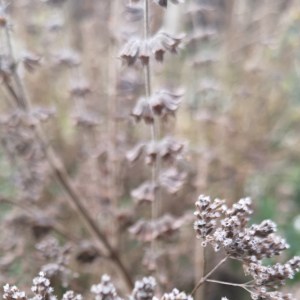Deshalb dürfen die verblühten Pflanzen gerne bis zum Ende des Winters stehen bleiben und werden erst dann zurückgeschnitten, wenn sie von unten neu auszutreiben beginnen. Die vertrockneten, grau-braunen Samenstände werden am besten trocken geerntet und dann zwischen den Fingern „gerebbelt“, wodurch sich die feineren Pflanzenteile von den verholzten Stielen trennen. Beim Rebbeln lässt sich auch direkt am Duft feststellen, ob noch nennenswerte Mengen an ätherischen Ölen enthalten sind. Im Laufe des Winters nehmen diese, auch abhängig von der Witterung, relativ stark ab.