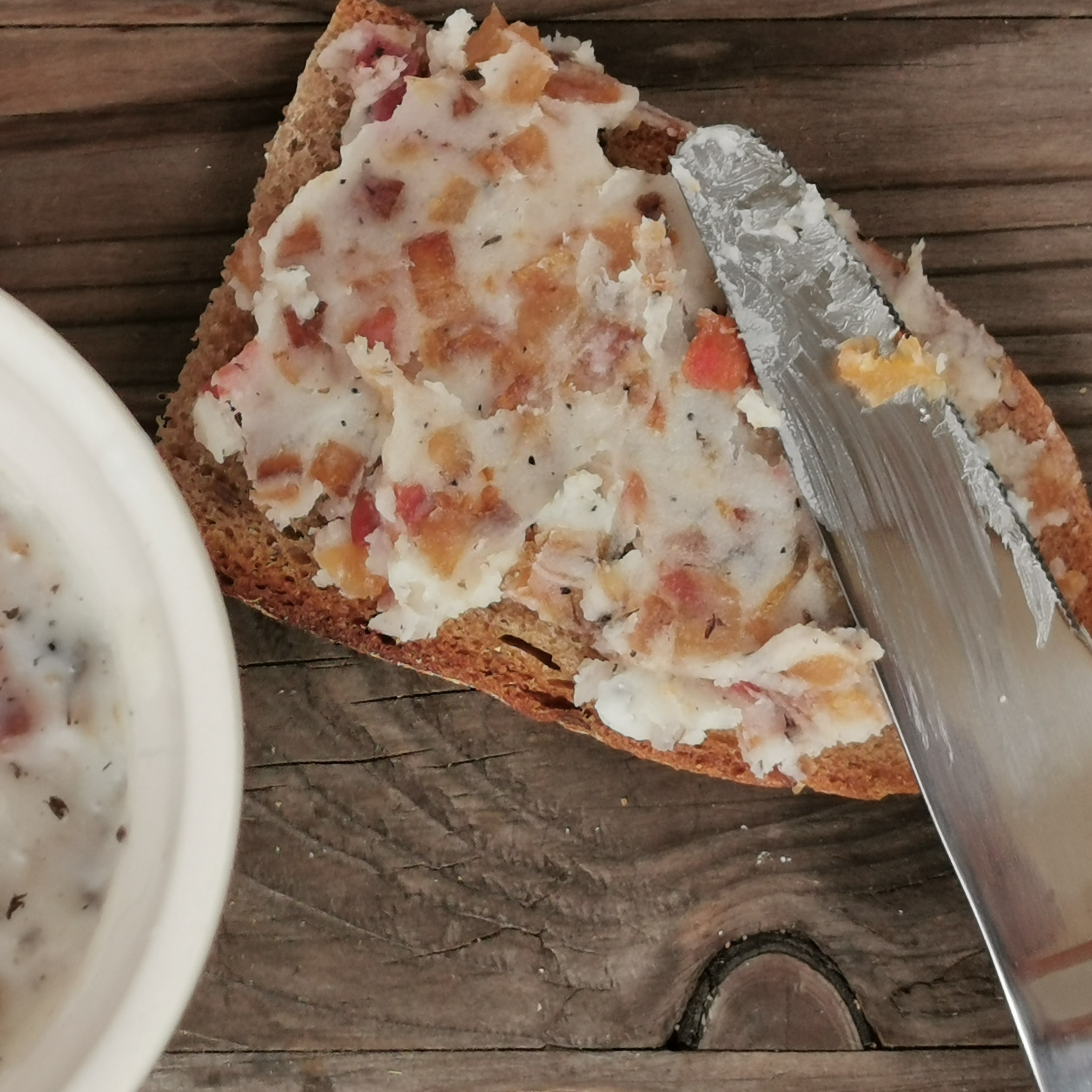 Statt mit Kokosöl lässt sich der Aufstrich natürlich auch klassisch mit Schweineschmalz zubereiten.
