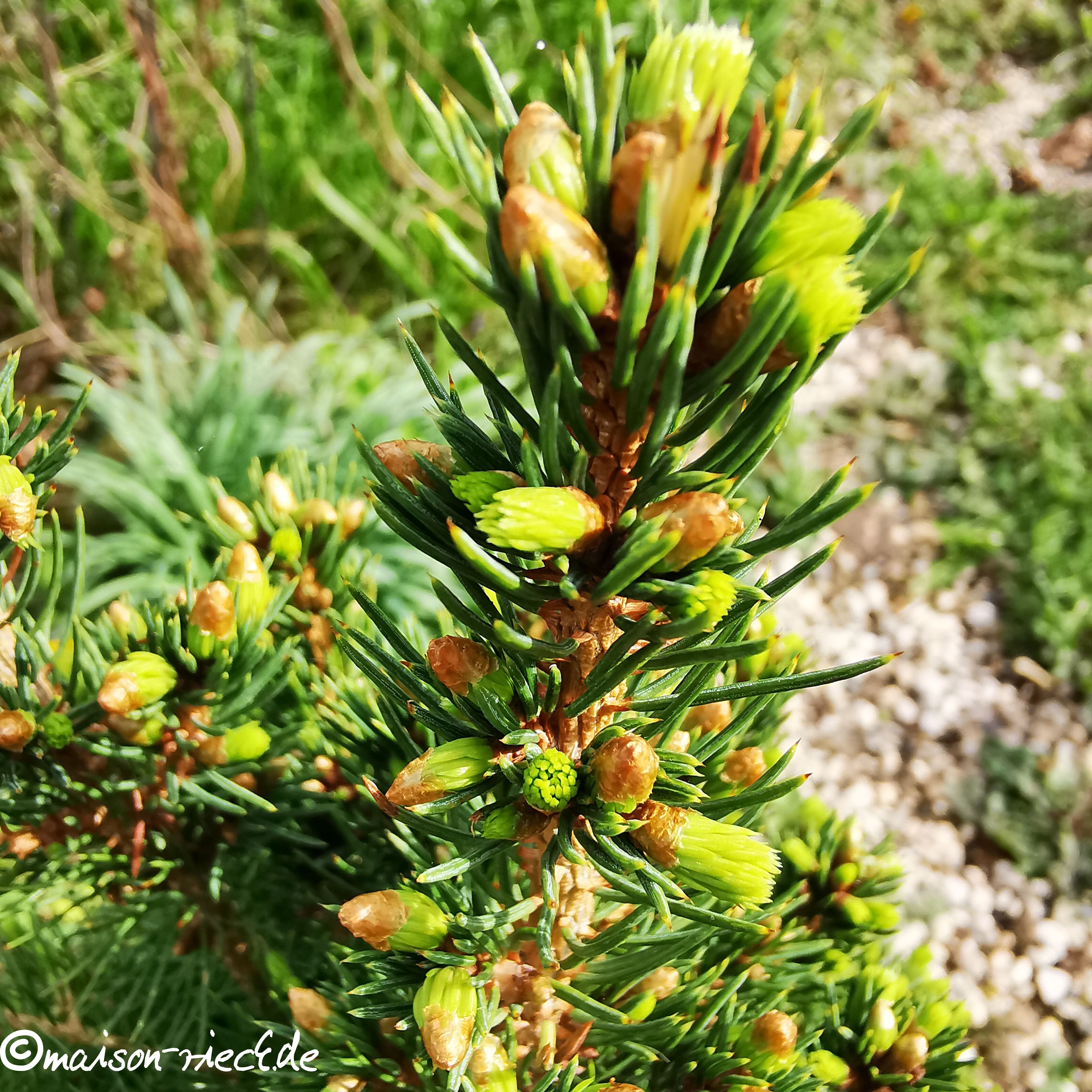 Ebenfalls ein wenig harzig schmecken die jungen Fichtentriebe, die auch Maiwipfel genannt werden. In ihnen steckt bereits alles, was den Nadelbaum später charakterisiert, vor allem Ätherische Öle, Gerbstoffe und Harze – ein buntes Bouquet an Aromen, die sofort Assoziationen an den Wald hervorrufen.