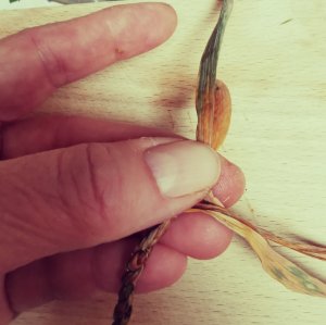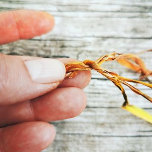 Auf diese Weise die Kordel immer weiter verlängern, bis sie die gewünschte Länge hat oder das Pflanzenmaterial aufgebraucht ist.