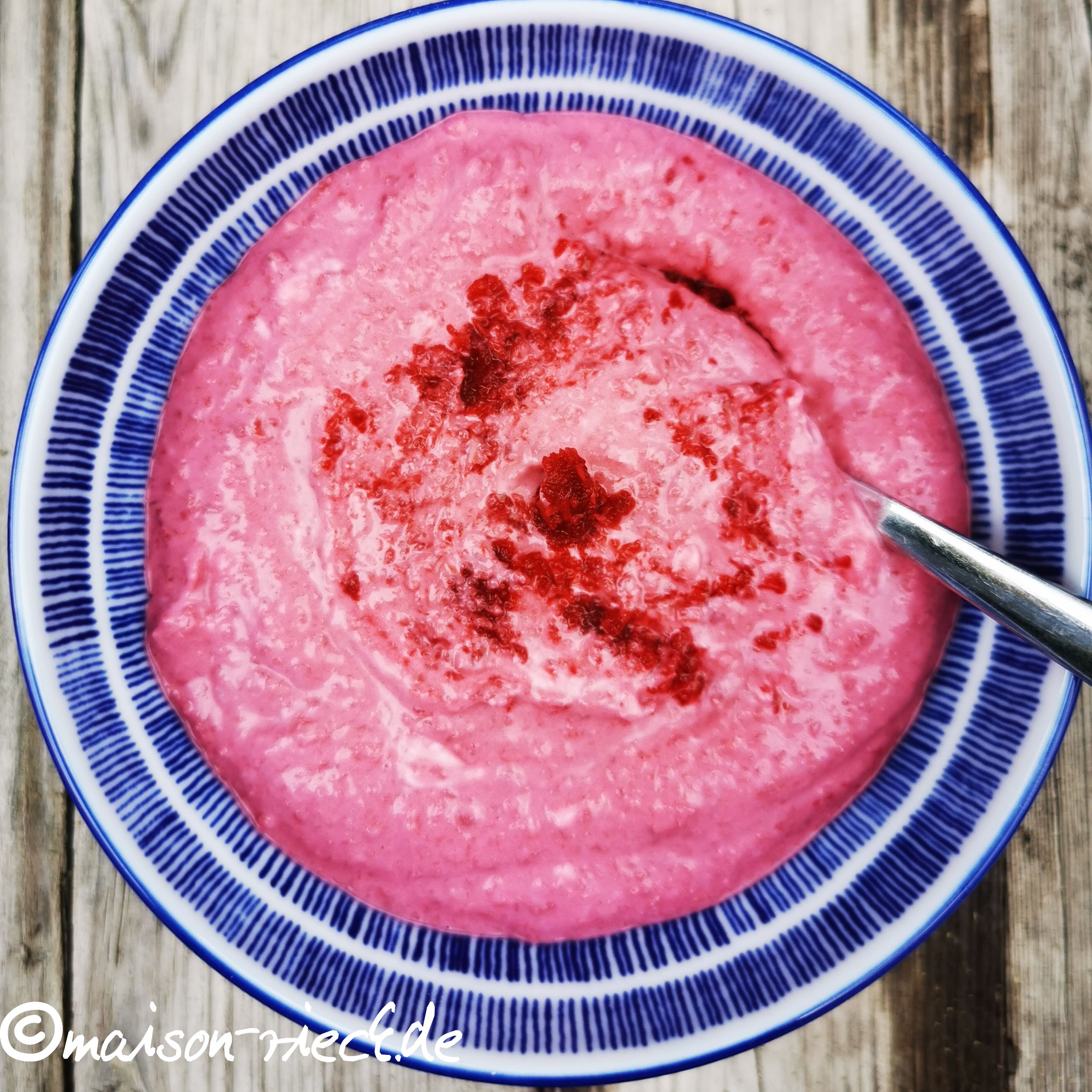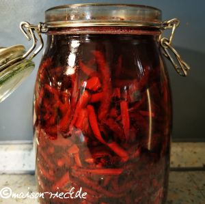 Zu der scharfen Wurzel kommt dann frische Rote Bete (nicht gekocht!) und Salz. Die Zutaten werden in einem einfachen Drahtbügelglas für ca. 3 Wochen fermentiert und anschließend püriert. Diese Paste lässt sich dann bis zu drei Monate im Kühlschrank aufbewahren und ist jederzeit zur Hand, um leckere Aufstriche (z.B. mit Frischkäse oder Cashew-Creme) oder Salat-Dressings daraus zu zaubern, die nicht nur die Geschmacksnerven erfreuen, sondern auch die Darmflora und das Immunsystem stärken.