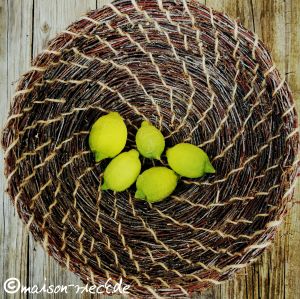 Der Korb wird von der Mitte aus spiralförmig gewickelt und mit dem Garn gebunden.