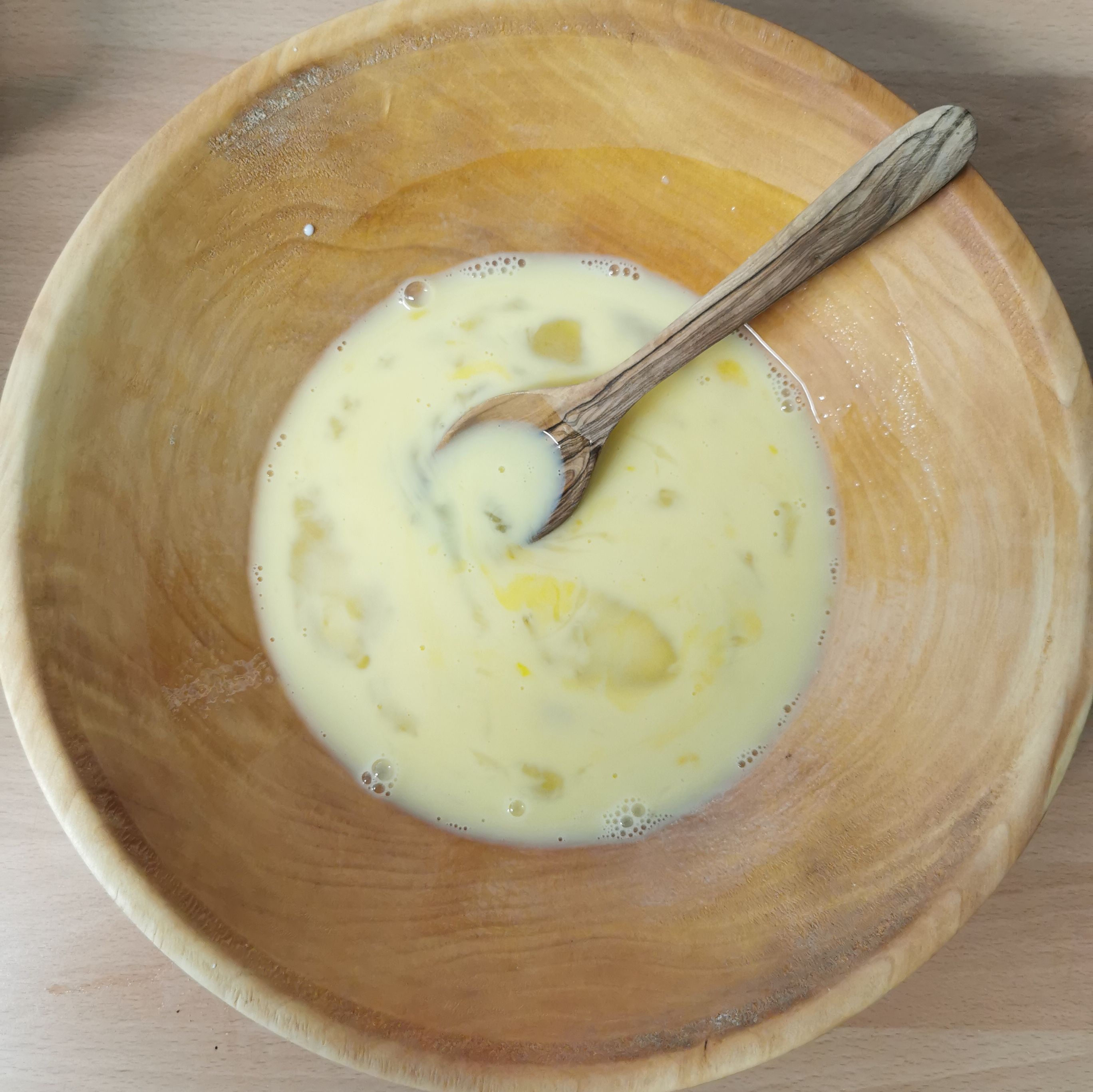 Wenn die Masse eingeweicht ist, die gehackten Kräuter untermischen.