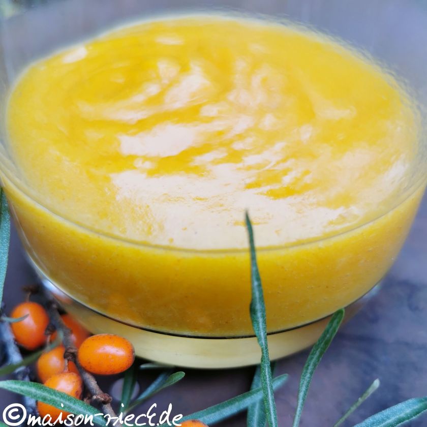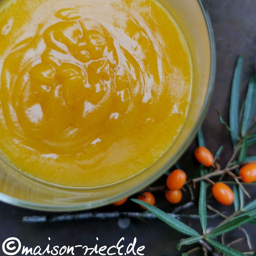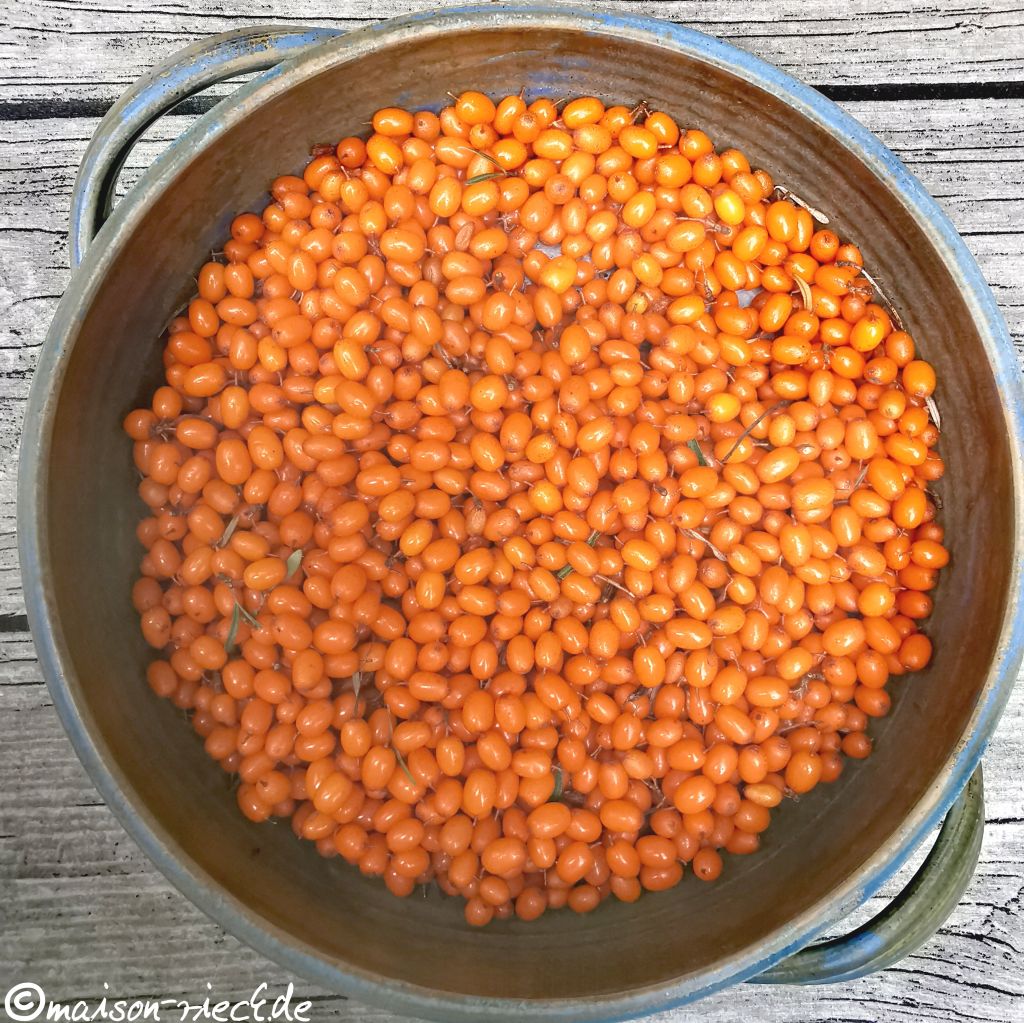 Wie sich die geernteten Sanddornfrüchte zu Saft verarbeiten lässt, ist im Beitrag Sanddorn-Curd beschrieben.