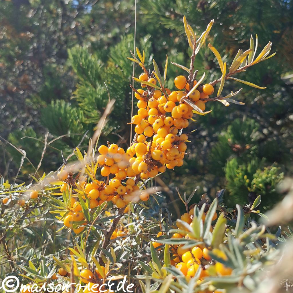 Sanddorn, der auch Haffdorn, Seedorn oder Fasanenbeere genannt wird, kommt in Europa in vielen Regionen vor, vom Meer bis in die Berge. Er liebt sand- und kieshaltige Böden und kann dort auch große Bestände bilden. Die Früchte, die genaugenommen „beerenartige Scheinfrüchte“ sind, sitzen dicht beieinander am Ast.