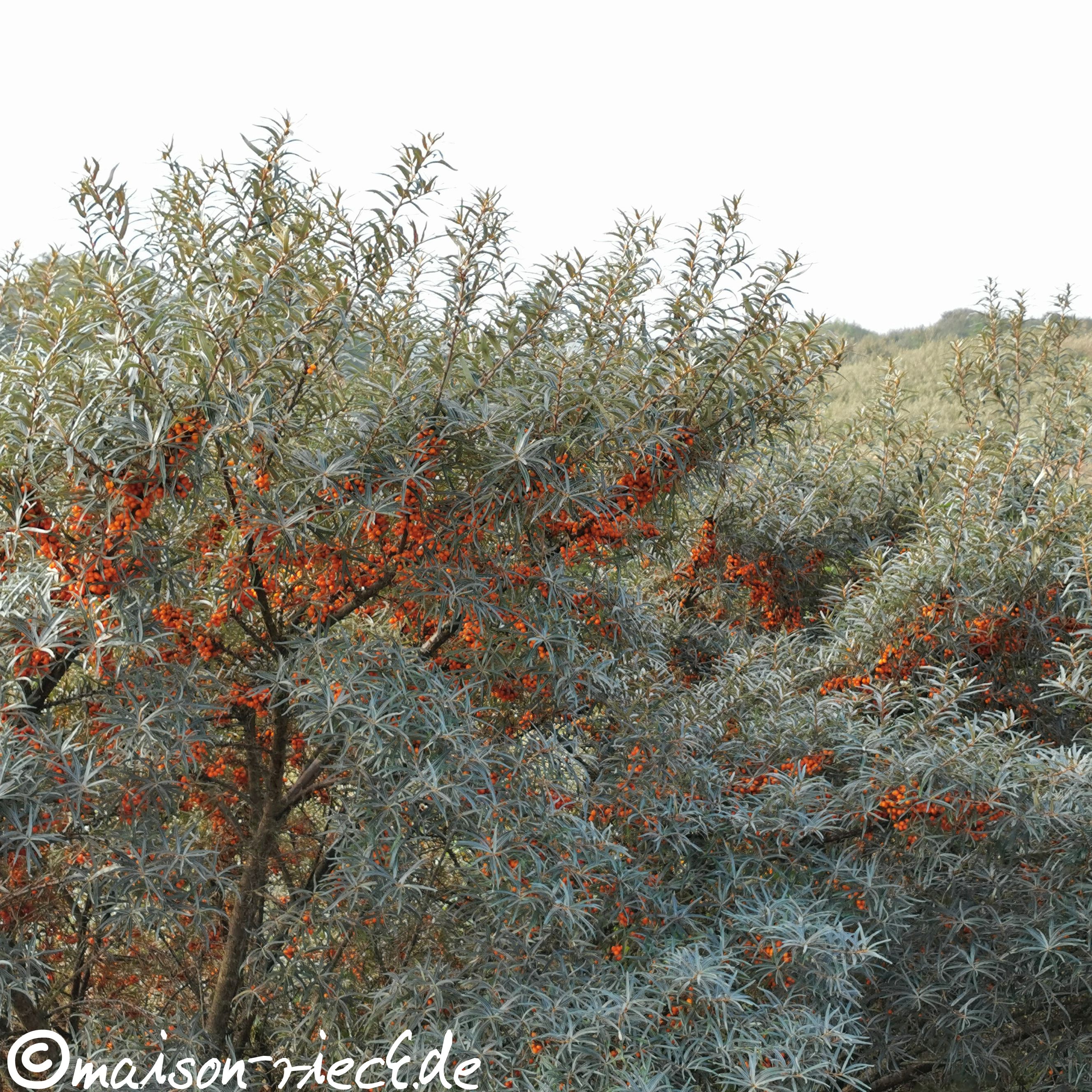 Sanddorn, der auch Haffdorn, Seedorn oder Fasanenbeere genannt wird, kommt in Europa in vielen Regionen vor, vom Meer bis in die Berge. Er liebt sand- und kieshaltige Böden und kann dort auch große Bestände bilden. Die Früchte, die genaugenommen „beerenartige Scheinfrüchte“ sind, sitzen dicht beieinander am Ast.