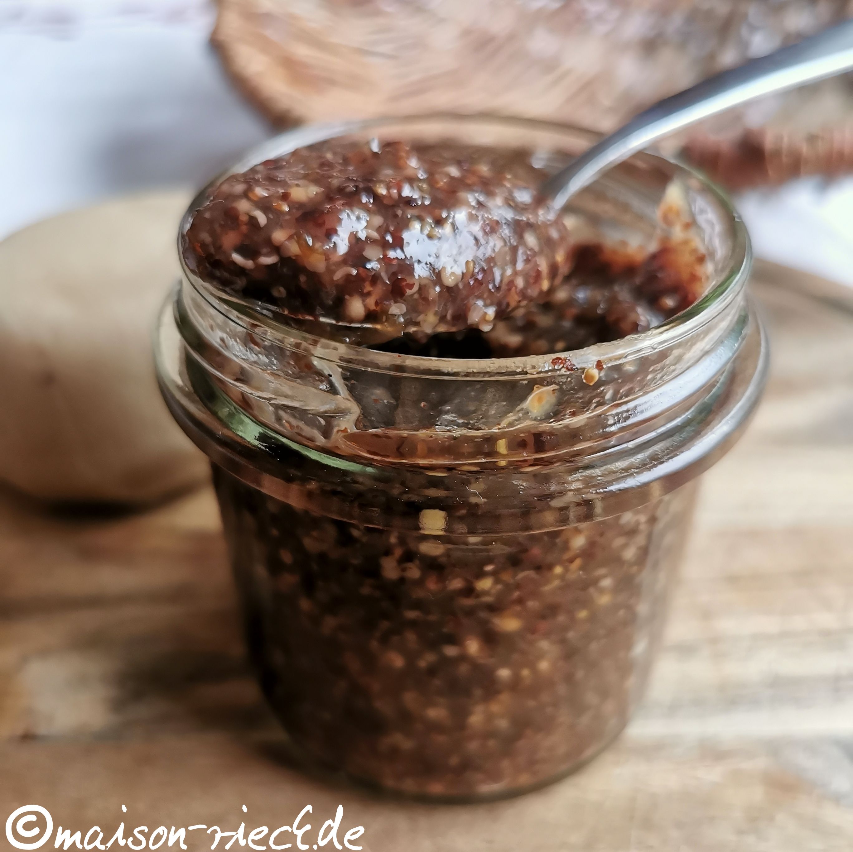Je länger der Feigensenf reift, desto besser entwickeln und verbinden sich die Aromen. Während er anfangs noch etwas bitter und relativ scharf sein kann, wird er mit der Zeit milder und runder.