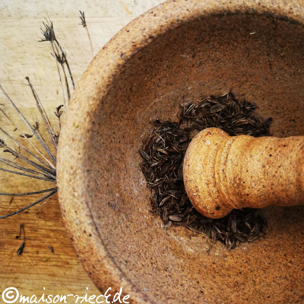 In der kalten Jahreszeit haben wärmende Kräuter und Gewürze einen besonderen Stellenwert. Dazu gehören insbesondere solche, die eine gewisse Schärfe mitbringen, wie zum Beispiel Chilischoten und Ingwer, oder mit einem hohen Gehalt an ätherischen Ölen. Zur zweiten Gruppe gehören die Fenchelsamen. Während das Wurzelgemüse selbst einen eher milden Geschmack hat, haben es die reifen Früchte in sich – sogar noch, wenn sie gegen Ende des Winter gesammelt werden.