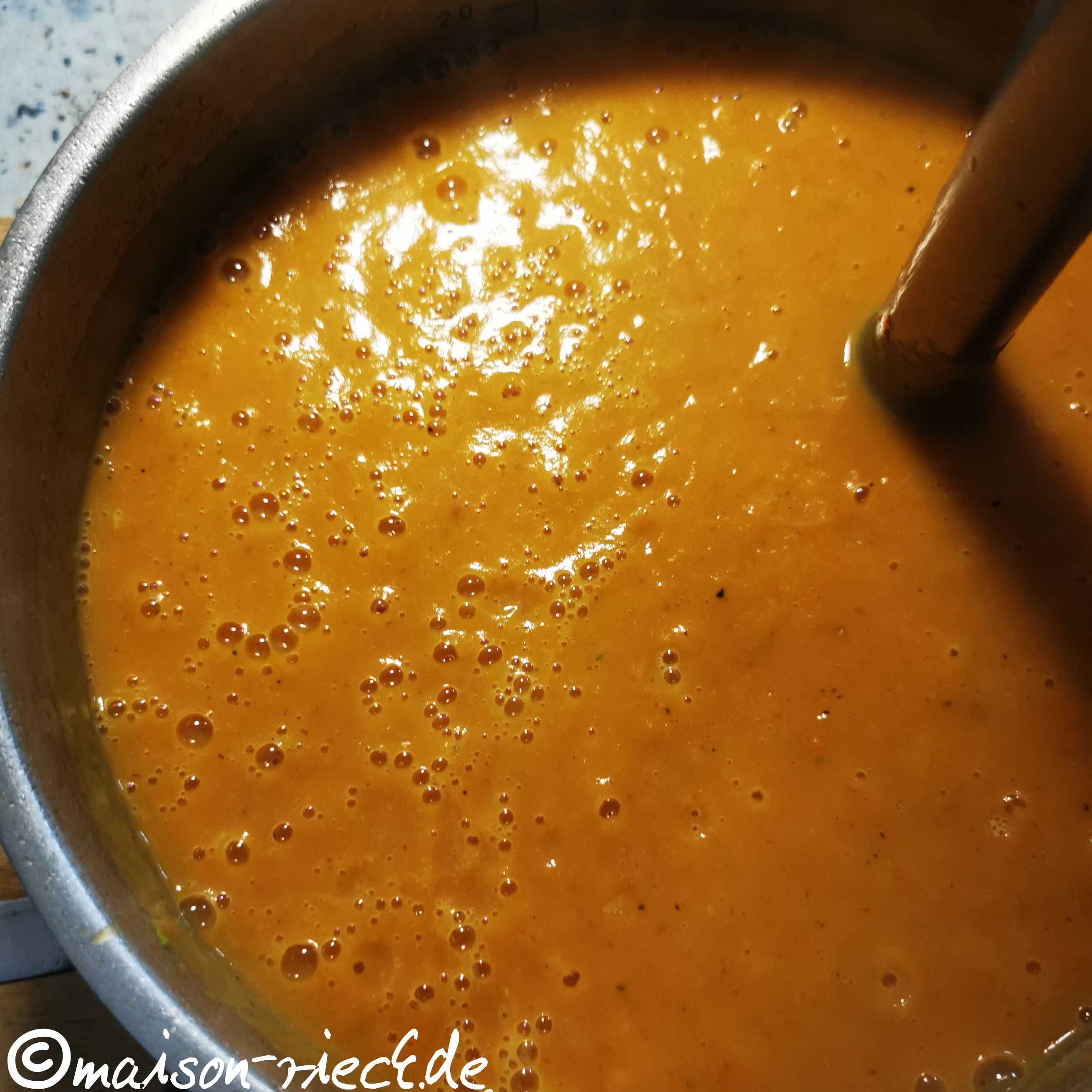 Als Basis für die Suppe eignen sich Süßkartoffeln perfekt, denn sie machen die Suppe sämig und bringen eine angenehme Süße und eine wunderbare Farbe mit. Wenn keine (lokal angebauten) Süßkartoffeln erhältlich sind, lassen sie sich durch mehligkochende Kartoffeln ersetzen; die Konsistenz und der Geschmack sind aber nicht identisch. Die Süßkartoffel enthält im Gegensatz zur Kartoffel die Vitamine A und E sowie Beta-Carotin und mehr Ballaststoffe, was sie zu einer interessanten Alternative macht.