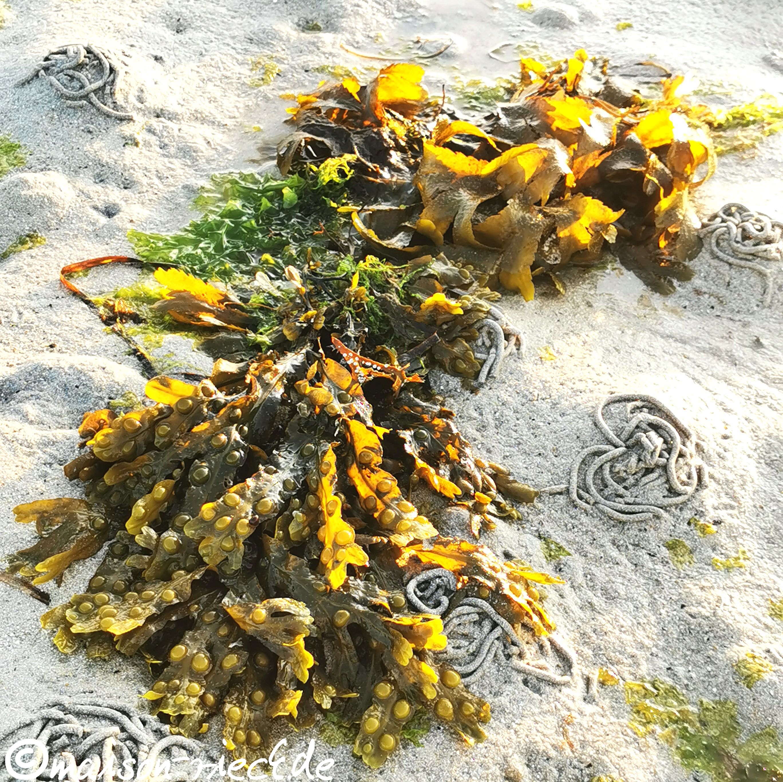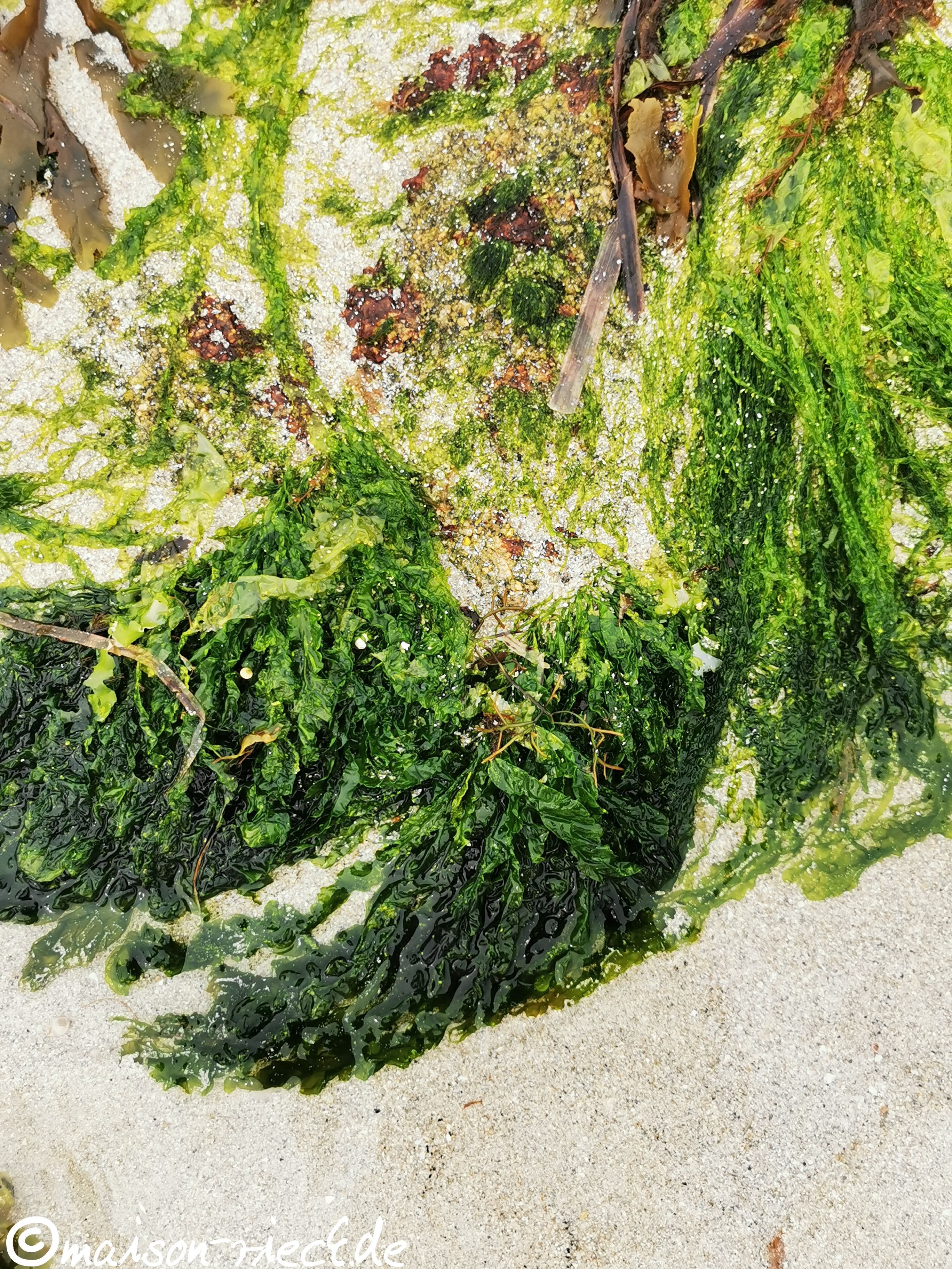 Eine Algenführung am Strand von Port Moguer in der Nähe von Plouha an der Côte Granite Rose ist zum Beispiel ein sehr beeindruckendes Erlebnis. Ähnlich wie bei den Landpflanzen haben die Algenarten sehr individuelle Eigenschaften und sie können sich auch geschmacklich stark unterscheiden. Die Aromen reichen von umami über salzig, rauchig, würzig, mild, scharf, süßlich bis nussig. Einen dezenten bis intensiven Fischgeschmack haben die Algen im ursprünglichen Zustand fast alle, wobei allerdings eigentlich Fisch nach Algen schmeckt und nicht umgekehrt, denn die Algen bilden die Nahrung für viele Fischarten. Neben vielen Mineralstoffen, Vitaminen und Ballaststoffen enthalten Algen auch essentielle Aminosäuren und Omega-3-Fettsäuren, was sie ernährungsphysiologisch sehr interessant macht.