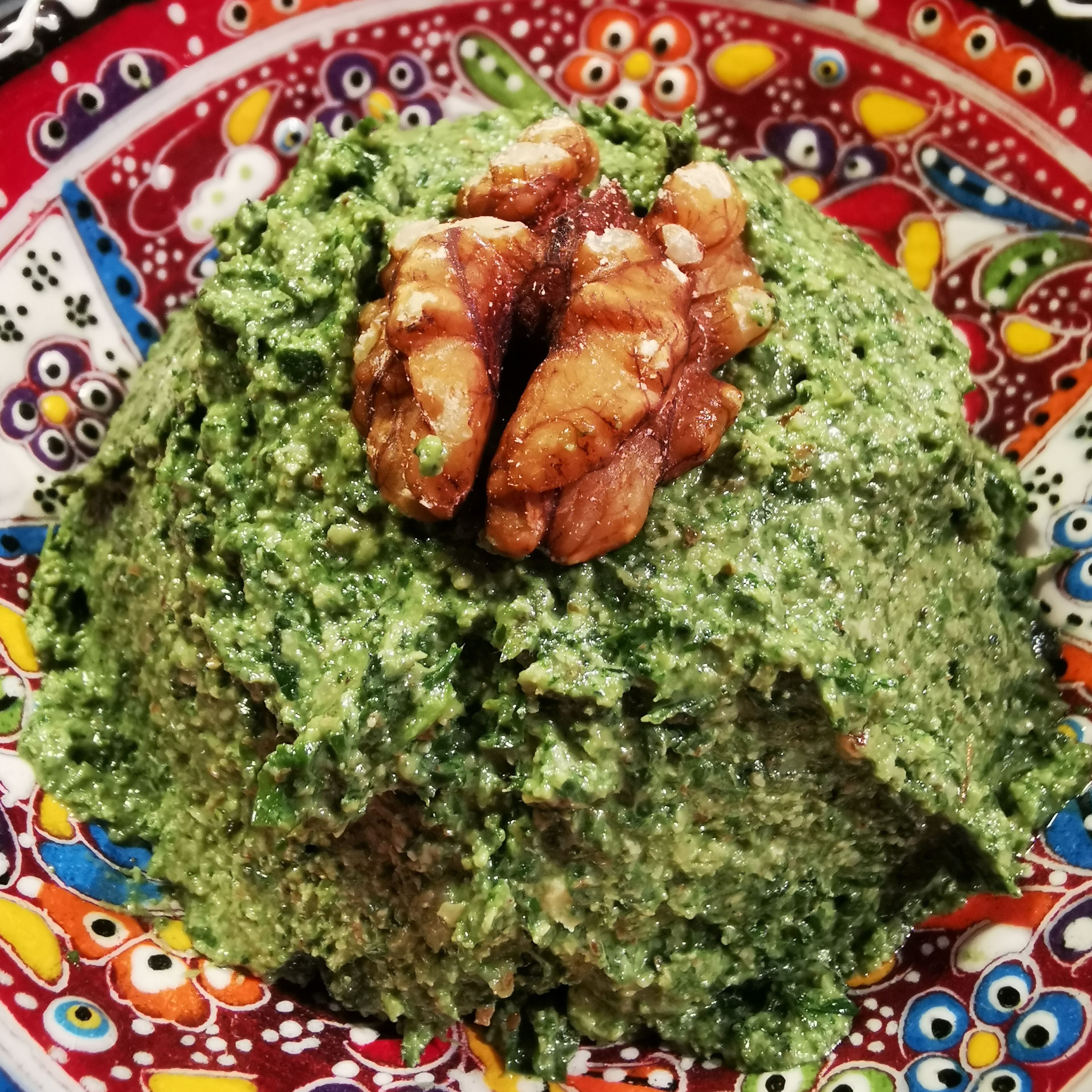 Pkhali ist die georgische Variante eines Pestos und besteht vor allem aus gemahlenen Walnüssen und Spinat. Wird der kultivierte Spinat ganz oder teilweise durch Wildspinat bzw. Wildkräuter ersetzt, wird dieses traditionelle Gericht noch intensiver und gesünder. Aber auch mit TK-Spinat ist Pkhali vor allem im Herbst eine wunderbare Alternative zu einem „normalen“ Pesto.